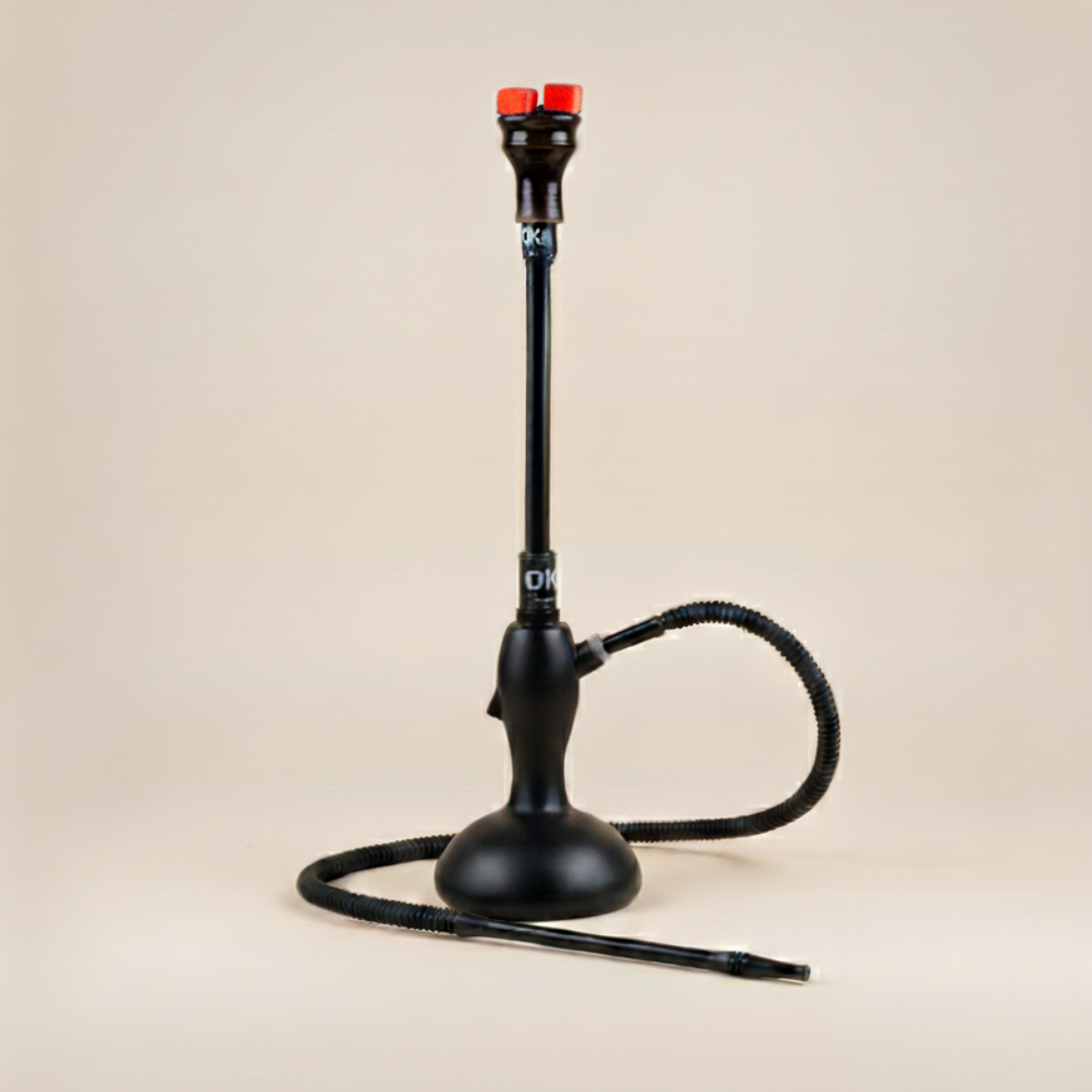 شيشة الأوڤا (OKA) بتاعت التبغ الأسود دي فيها عمود دخان مطوّل (أو "ماسورة طويلة") عشان يبرّد الدخان كويس وإنت بتشرب التبغ السخن.