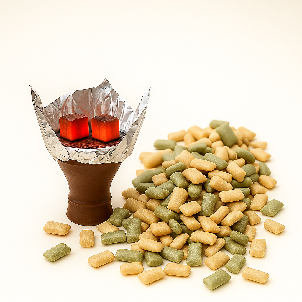 حجر معسل جاهزة للتدخين بتقعد من 45 لـ 60 دقيقة، بنكهات مختلفة من معسل الكبير. الكمية حوالي 12 جرام، مثقوبة وجاهزة بالكراون اللي بيحافظ على الفحم ثابت وآمن.